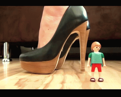 Wo bist du denn mein kleiner Sklave?? *lach* Ach da unten....fast hätte ich dich mit meinen Riesenabsätzen zermatsch und es nicht mal gemerkt. Du bist so klein... ein kleiner Nichtsnutz, kleiner als eine Kanalratte! Das schöne daran ist aber, ich kann dich überall mit hinnehmen.....